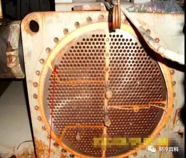 4.2、干式蒸發(fā)器:雙機頭如果一個機頭進水,則把另一個完好的那個系統(tǒng)蒸發(fā)器冷媒打入冷凝器,在把蒸發(fā)器的氣體放掉,在打開蒸發(fā)器兩端的封板干式蒸發(fā)器水分處理:如現(xiàn)場條件具備可先用壓縮空氣對每根管進行處理,必須要從上到下的順序進行,把大量的水分吹出,之后再用高壓氮氣對每根管進行處理,直到另一端吹出無白色液體為止。對水系統(tǒng)沖入不高于設計水壓的氮氣的壓力檢查銅管有多少破漏的,拔出損壞的銅管更換新管或者直接用黃銅棒堵上,黃銅棒需涂抹密封膠。