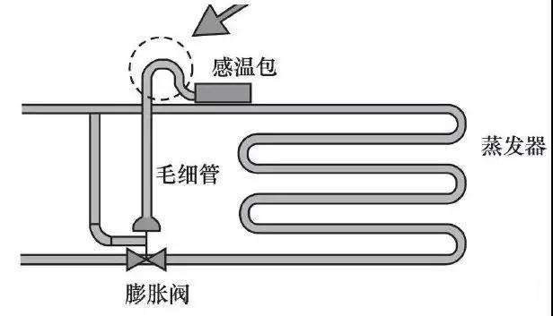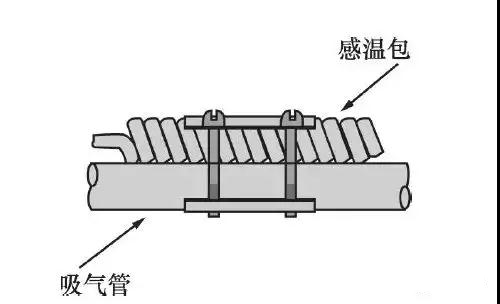 1、必須安裝在吸氣管的上方,同時(shí)需要保證感溫包緊貼著吸氣管,改善感溫包與吸氣管中制冷劑的傳熱效果,減少時(shí)間滯后。