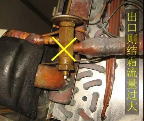 熱力膨脹閥開啟過大:制冷劑通過的流量就多,即熱力膨脹閥向蒸發(fā)器的供液量大于蒸發(fā)器負(fù)荷,使液體制冷劑蒸發(fā)過剩,會造成部分液體制冷劑來不及在蒸發(fā)器內(nèi)蒸發(fā),同氣態(tài)制冷劑一起被吸入壓縮機(jī),引起壓縮機(jī)的濕沖程(液擊),使壓縮機(jī)不能正常工作,造成一系列工況惡劣,甚至沖缸損壞壓縮機(jī)的事故。同時(shí),熱力膨脹閥開啟過大也會造成制冷量下降,壓縮機(jī)功耗增加,增加了耗電量。