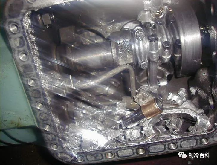在壓縮機(40HP、50HP)運行過程中,偶爾出現壓縮機吸氣過濾器變形前移,與電機轉子相碰,磨下的轉子鋁沫污染冷凍油,造成壓縮機無法運轉。常見原因是系統中的制冷劑含有水分,或者使用的是劣質制冷劑。